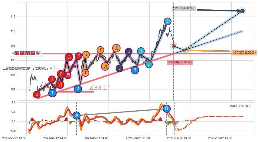 ➢ 预测:2021-09-15 12:00,【小幅回撤】稳定目前上涨趋势的前提下,预测价格:107.37