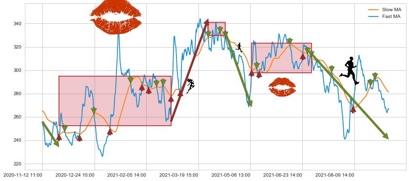05-07 12:00至07-01 11:00 慢线与快线多次接触,存在上下穿越,有缠绕
