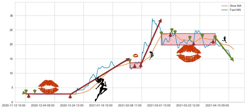 02-23 09:00至04-05 10:00 慢线与快线多次接触,存在上下穿越,有缠绕