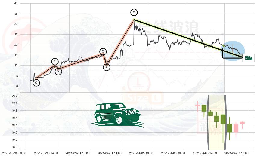 ➢ 🕰 价格走势在2021-04-06 12:00:00至2021-04-07 10:00:00期间形成高档五阴线,残存影响值:-0.41