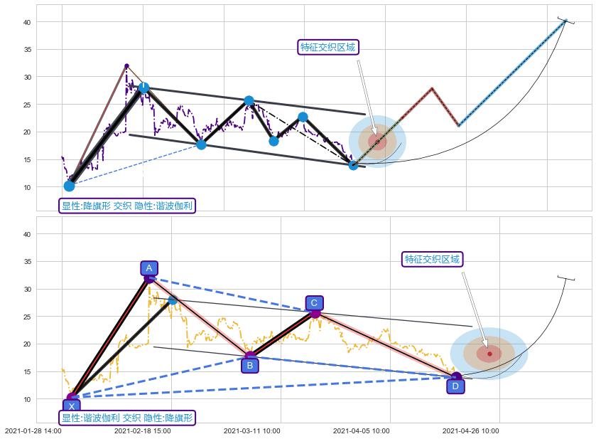 ➢ 降旗形与谐波伽利信号事件周期长度级别相同,同周期信号事件