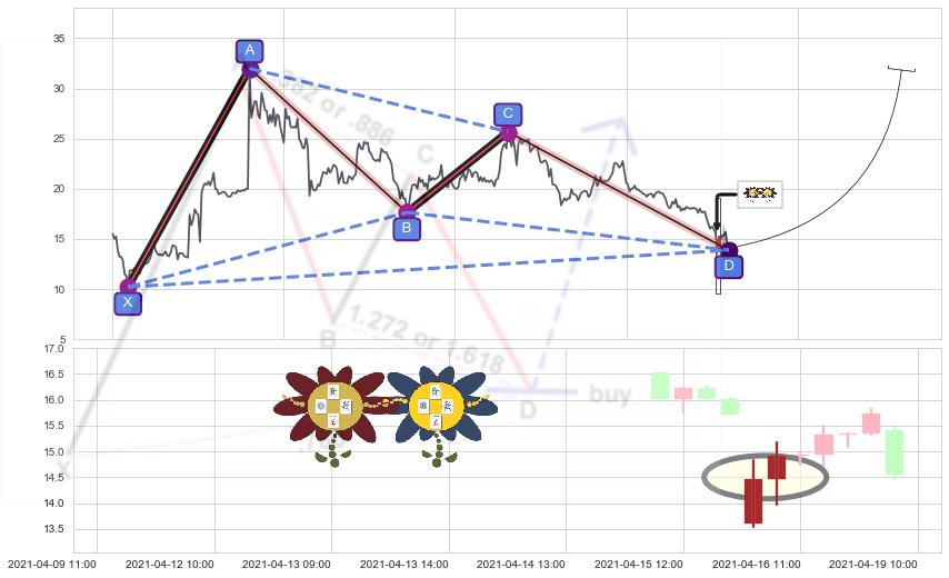 ➢ 谐波伽利:已到达d点:猜想c下行到达d点后报复性拉升上涨(均值回复)