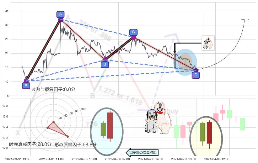 ➣ 阳包阴形态 + 谐波伽利d拐点上涨支撑信号叠加后【信号初始稳固度】偏低,【看多】信号叠加【可信度影响降权】