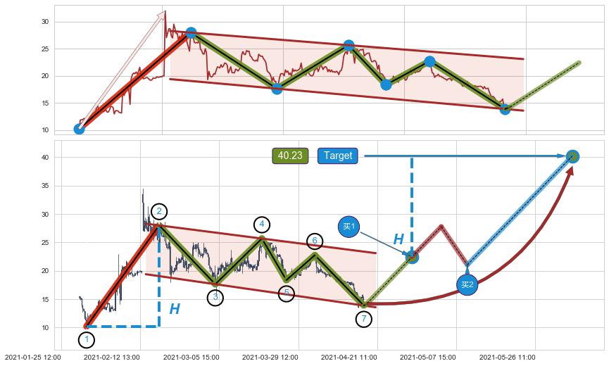 ➣ 最小中继整理涨幅→𝐇: 17.79 (𝐇旗杆的长度:旗杆起点→顶点)