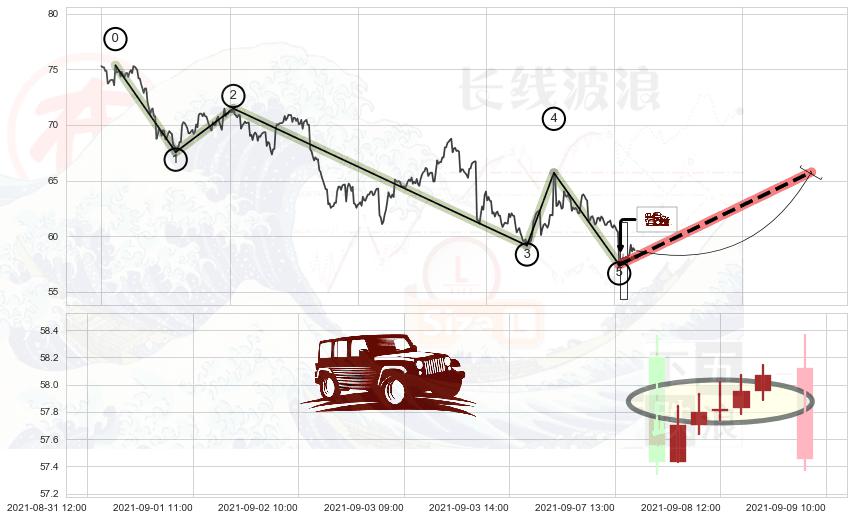 ➢ 🕰 价格走势在2021-09-08 10:00:00至2021-09-08 14:00:00期间形成低档五阳线,残存影响值:5.56