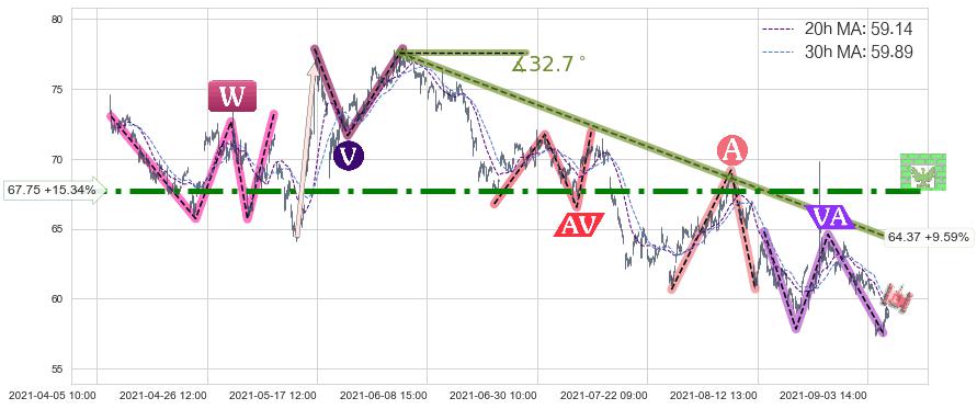 ♘ 阻力价格位67.75,可信任强度97.56%,距离最后交易2021-09-09 14:00形成的收盘价格58.74相差 +15.34%