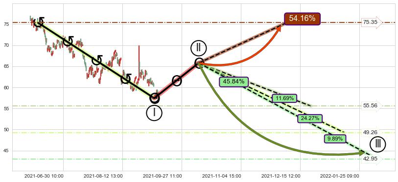 2021-06-22: 第一阻力位67.75有效抑制了下跌浪,成功阻止了价格的继续下跌。