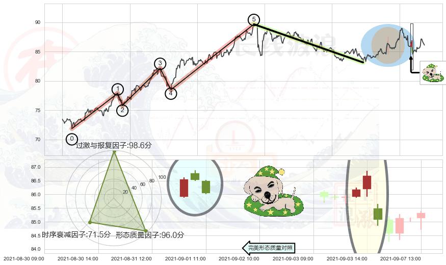 ➢ 🕰 价格走势在2021-09-07 00:00:00至2021-09-07 00:00:00期间形成单针探底(定海神针),残存影响值:5.88