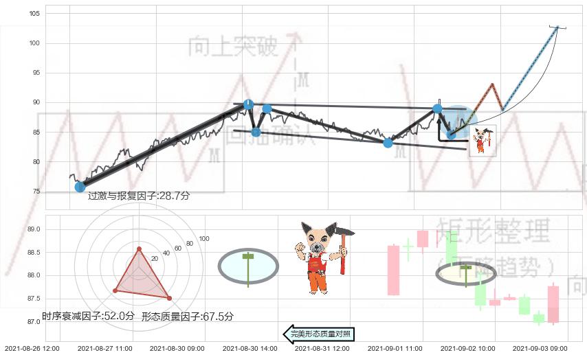 ➢ 🕰 价格走势在2021-09-01 14:00:00至2021-09-02 09:00:00期间形成吊颈线(上吊线),残存影响值:-4.65