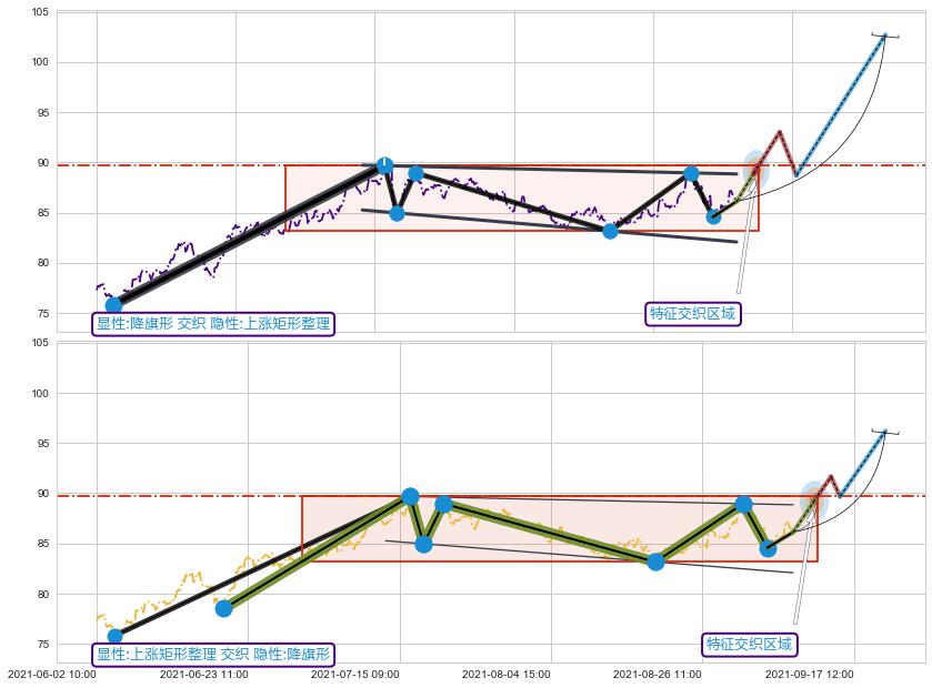 ➢ 降旗形与上涨矩形整理信号事件周期长度级别相同,同周期信号事件