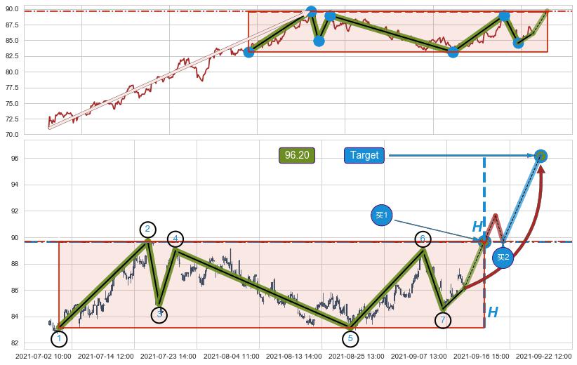 ➣ 最小中继整理涨幅→𝐇: 13.86 (𝐇旗杆的长度:旗杆起点→顶点)