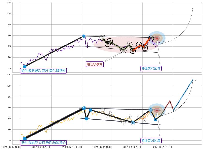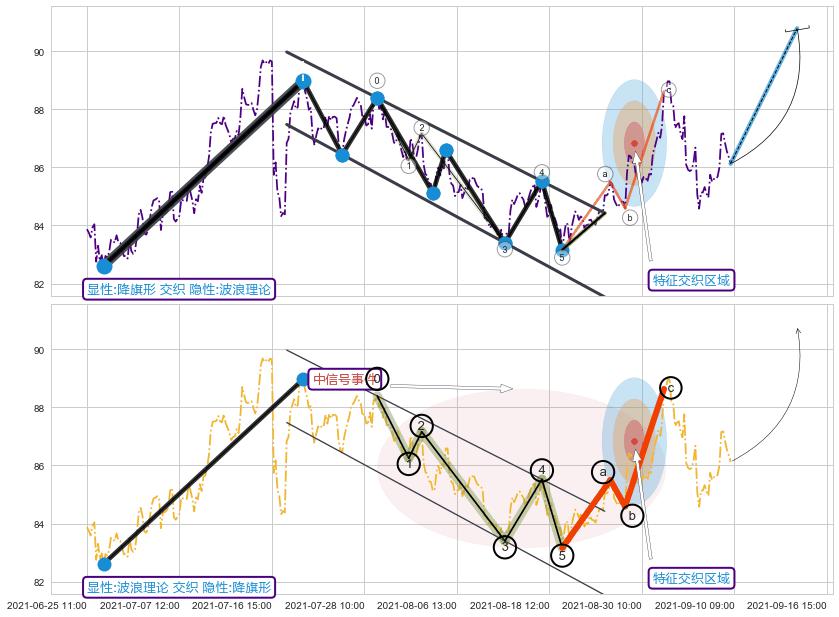 ➢ 波浪理论属【短级别信号事件】降旗形属【长级别信号事件】长短周期组合信号事件, 短长事件长度比34.74%