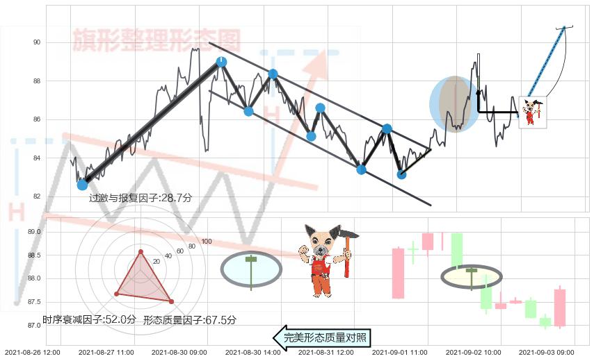 ➢ 🕰 价格走势在2021-09-01 14:00:00至2021-09-02 09:00:00期间形成吊颈线(上吊线),残存影响值:-4.65