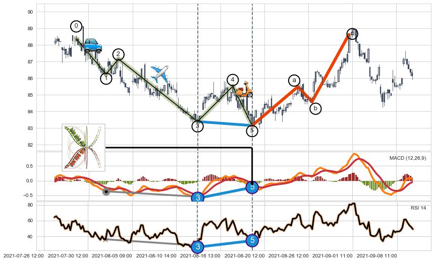➣ 波浪理论:猜想达到c点后小回调终止反转上涨 → 上涨 → 【拐点】临近 → 阶段均值回复结束后继续大周期趋势跟踪