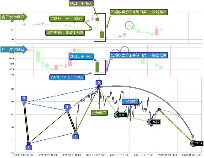 ➢ 2021-12-01 16:00形成:向下跳空【中继】缺口