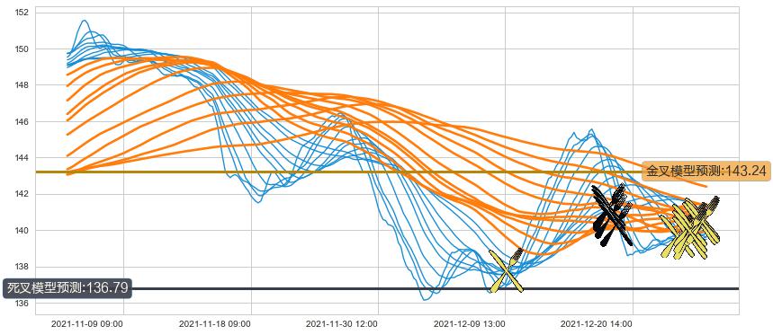 ➢ 45小时均线于(12-27 12:00: 140.35)形成【金叉】基于【金叉历史模型】预测金叉后最高波峰价格: 142.67, 金叉后最高价格140.79,尚未达到预测最高波峰价格, 预期继续上涨