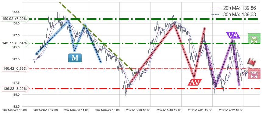 ♘ 阻力价格位145.77,可信任强度71.95%,距离最后交易2021-12-27 15:00形成的收盘价格140.79相差 +3.54%