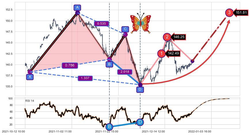 ➣ 已完成【蝴蝶】形态起点X: 10-13:14, 终点D: 12-02:15, 共238交易小时