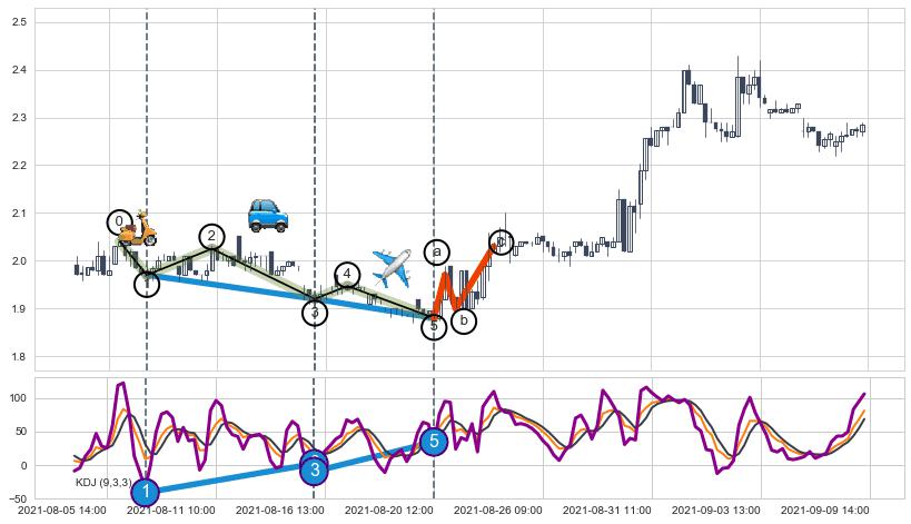 ➣ 波浪理论:猜想b点持续蓄力上涨至c点 → 上涨 → 机会信号 → 小趋势跟踪
