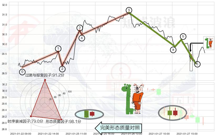 ➢ 🕰 价格走势在2021-01-27 10:00:00至2021-01-27 11:00:00期间形成中流砥柱形态,残存影响值:7.34