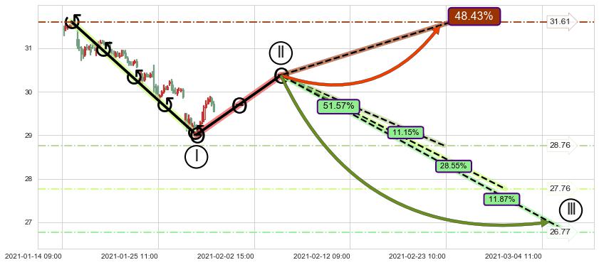 ➢ 循环浪继续向下【最高】位置(02-23:09, 28.76),匹配聚类样本比例21.62%, 可能性概率11.15%
