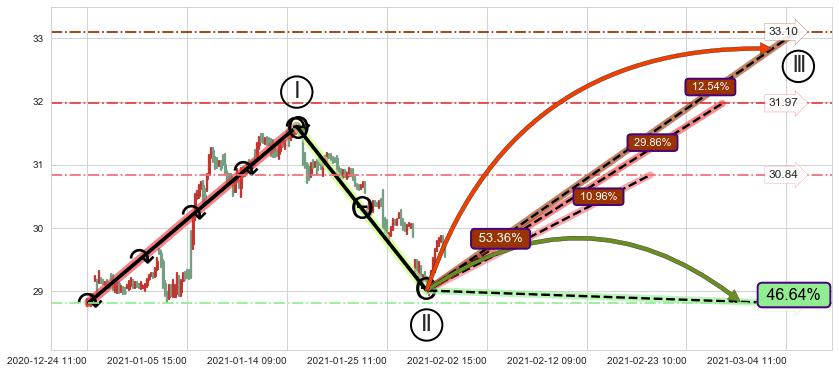 ➢ 循环浪继续向上【最低】位置(02-18:13, 30.84),匹配聚类样本比例20.54%, 可能性概率10.96%