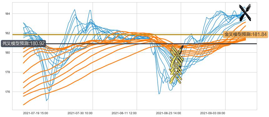 ➣ 21小时均线于(09-09 13:00: 183.98)形成【死叉】基于【死叉历史模型】预测死叉后最低波谷价格: 180.85, 死叉后最低价格184.00,已经下跌超出预测最低波谷价格, 预期反弹