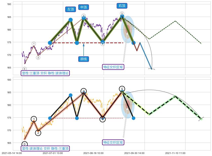 ➢ 三重顶与波浪理论信号事件周期长度级别相同,同周期信号事件