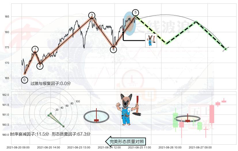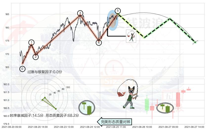 ➢ 吊颈线(上吊线) + 波浪理论上涨浪:浪5回调拐点信号叠加后【信号初始稳固度】中等,【看空】信号叠加【可信度影响中等】