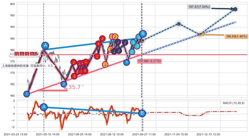 ➣ 预测:2021-11-22 10:00,【试探支撑】稳定目前上涨趋势的前提下,预测价格:186.69