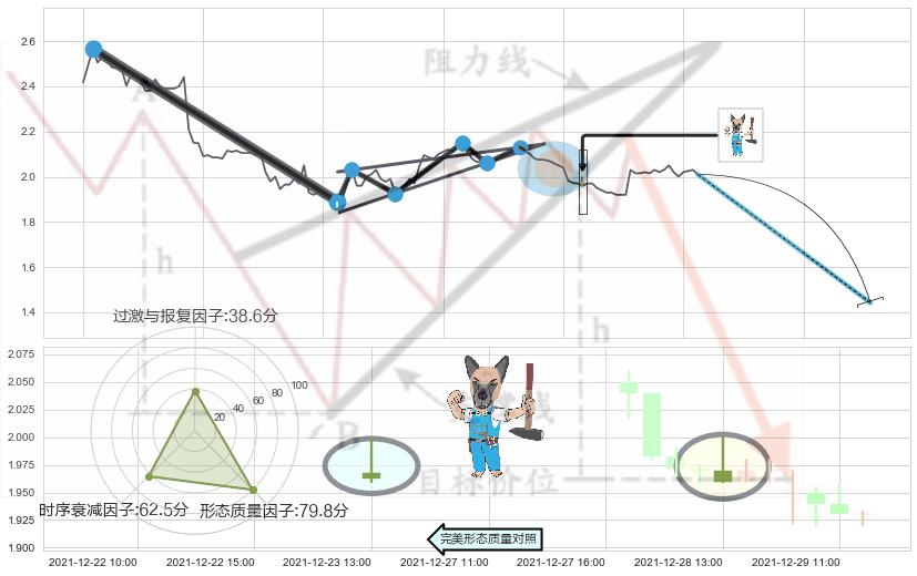 ➢ 2021-11-12 14:00-2021-12-21 09:00下跌趋势存在反转上涨[机会],其原下跌趋势的阻力位(1.8805)已被突破[强支撑信号],原下跌趋势角度: 42.6˚