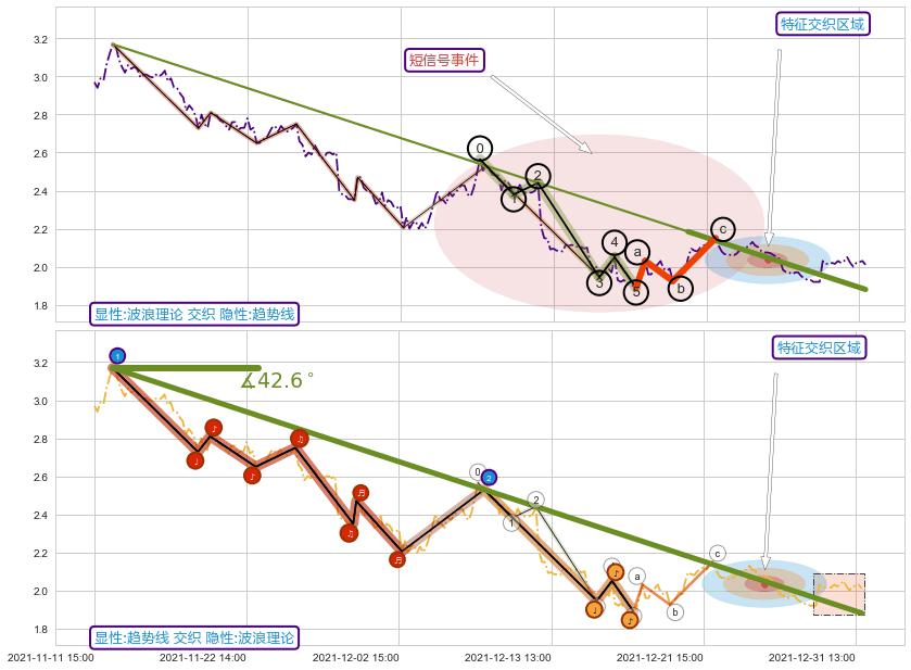 从2021-12-29 11:00至2021-12-31 15:00,共包含20个小时,阶段股价上涨4.26%,阶段股价变动位移路程比: 1 : 3