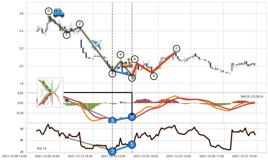 ➢ 波浪理论属【短级别信号事件】缠论中枢点属【长级别信号事件】长短周期组合信号事件, 短长事件长度比13.93%