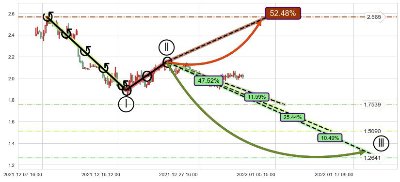 ➢ 循环浪继续向下【最低】位置(01-19:12, 1.2641),匹配聚类样本比例22.08%, 可能性概率10.49%