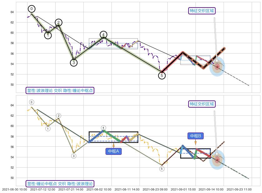 ➢ 波浪理论与缠论中枢点信号事件周期长度级别相同,同周期信号事件