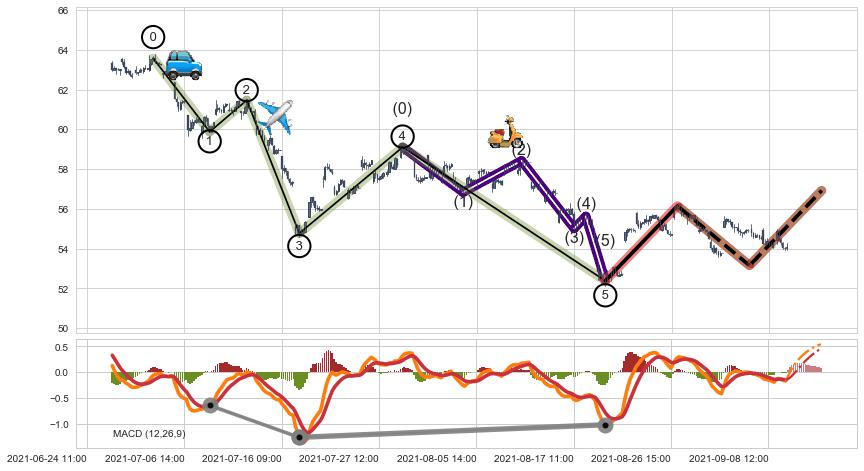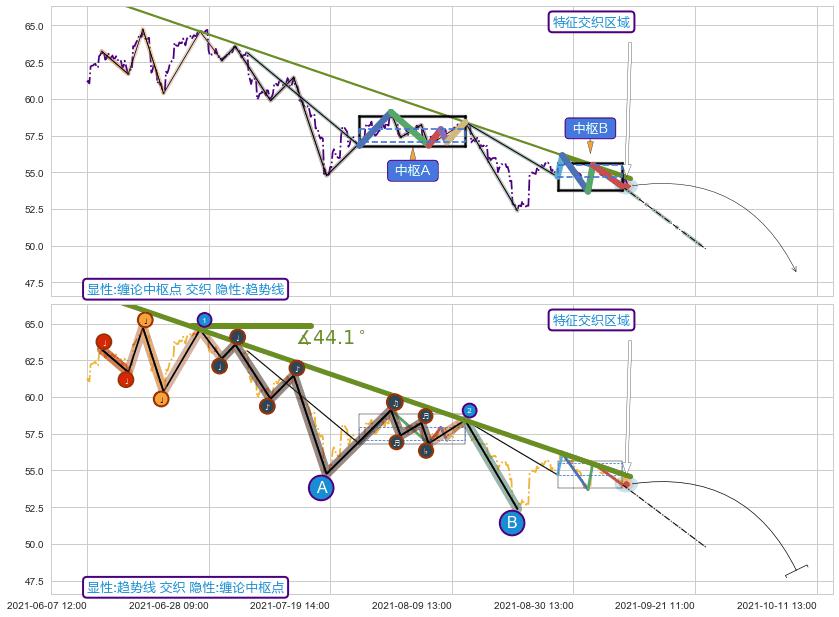 ➣ 缠论中枢点:猜想破位中枢B后持续下拉 → 下跌 → 破位中枢B支撑 → 持续趋势跟踪