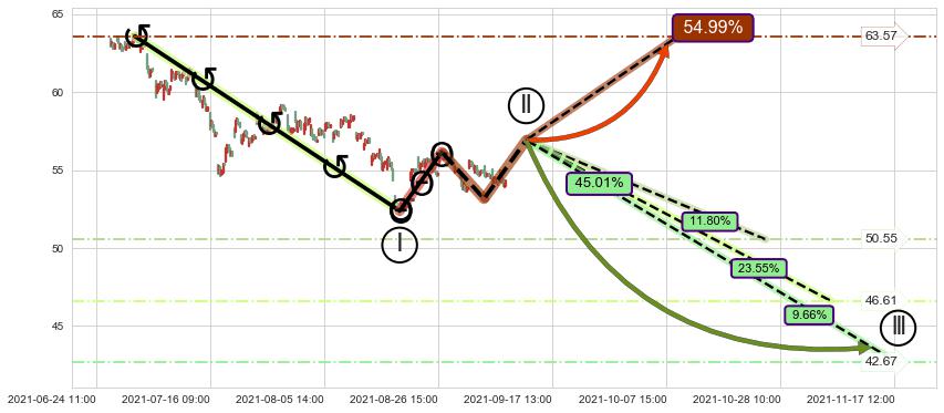 ♘ 阻力价格位55.14,可信任强度67.67%,距离最后交易2021-09-09 14:00形成的收盘价格54.07相差 +1.99%