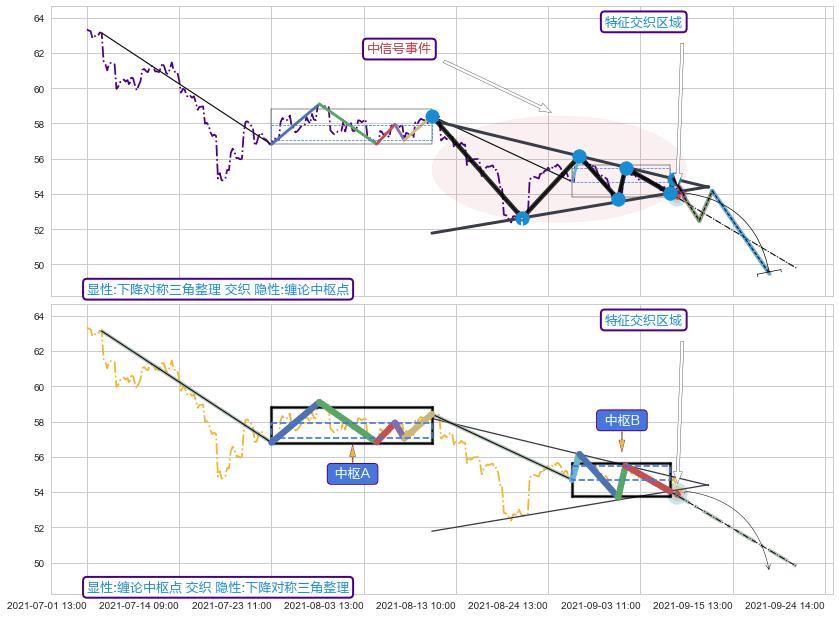 ➢ 下降对称三角整理属【中级别信号事件】缠论中枢点属【长级别信号事件】中长周期组合信号事件,中长事件长度比43.35%