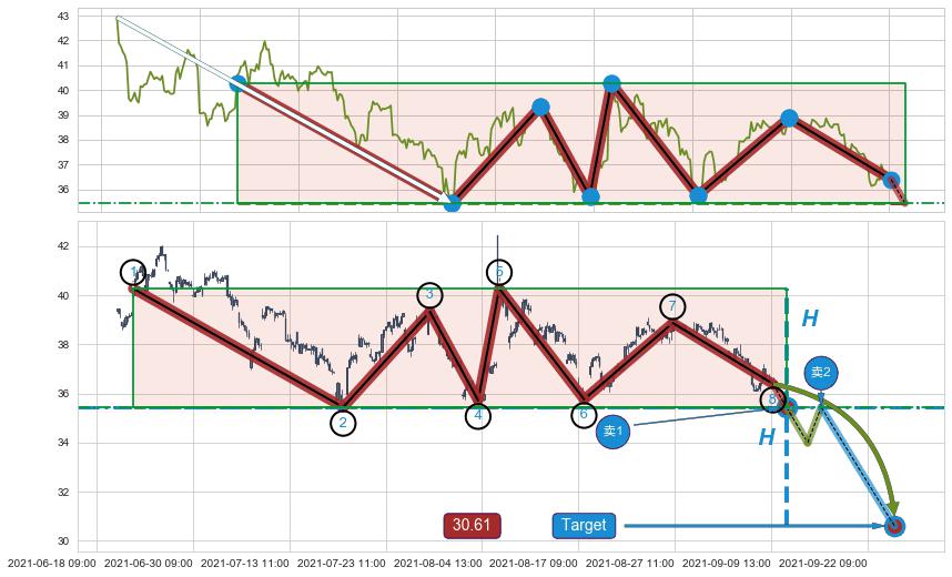 ♘ 阻力价格位41.90,可信任强度94.99%,距离最后交易2021-09-09 14:00形成的收盘价格36.39相差 +15.13%