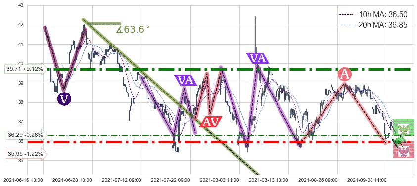 ♘ 阻力价格位36.29,可信任强度50.27%,距离最后交易2021-09-09 14:00形成的收盘价格36.39相差 -0.26%