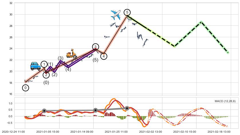 ➢ 最后的上涨趋势2020-12-24 12:00至2021-01-25 15:00:存在破位迹象,后续小调整或者反转下跌
