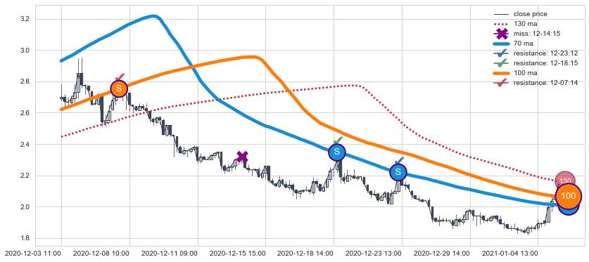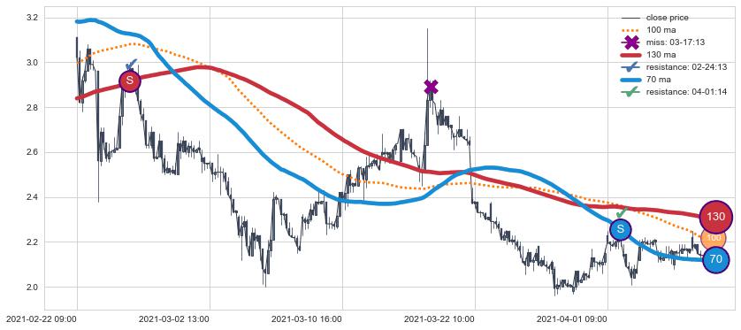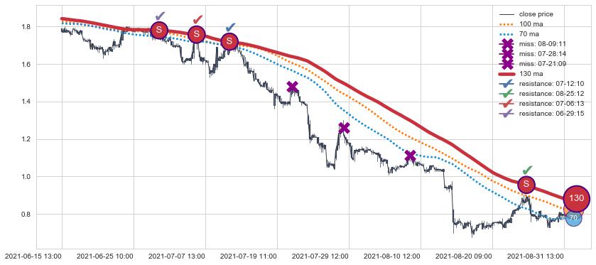 ➣ 70小时均线于(09-07 15:00: 0.8099)形成【死叉】基于【死叉历史模型】预测死叉后最低波谷价格: 0.6200, 死叉后最低价格0.7650,尚未达到预测最低波谷价格, 预期继续下跌