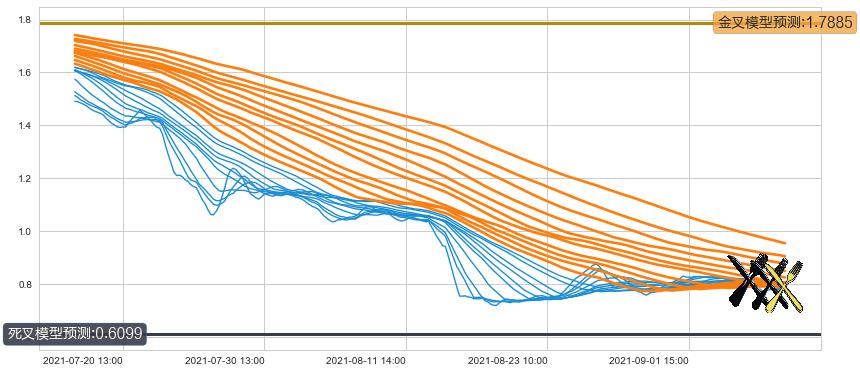 ➢ 21小时均线于(09-07 14:00: 0.8203)形成【死叉】基于【死叉历史模型】预测死叉后最低波谷价格: 0.7094, 死叉后最低价格0.7650,尚未达到预测最低波谷价格, 预期继续下跌