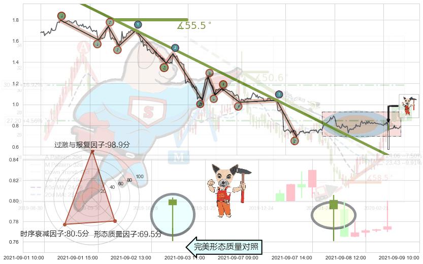 ➢ 🕰 价格走势在2021-09-09 13:00:00至2021-09-09 13:00:00期间形成仙人指路,残存影响值:4.92