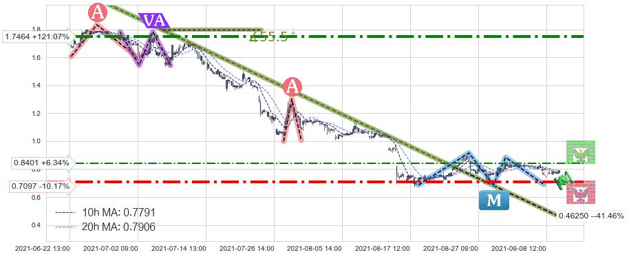 ♘ 支撑价格位0.7097,可信任强度74.30%,距离最后交易2021-09-09 14:00形成的收盘价格0.7900相差 -10.17%