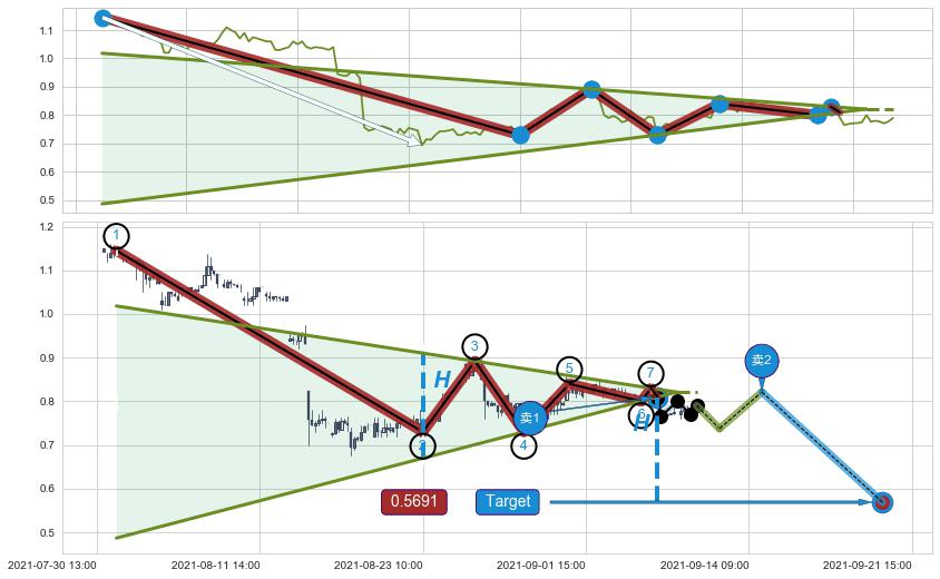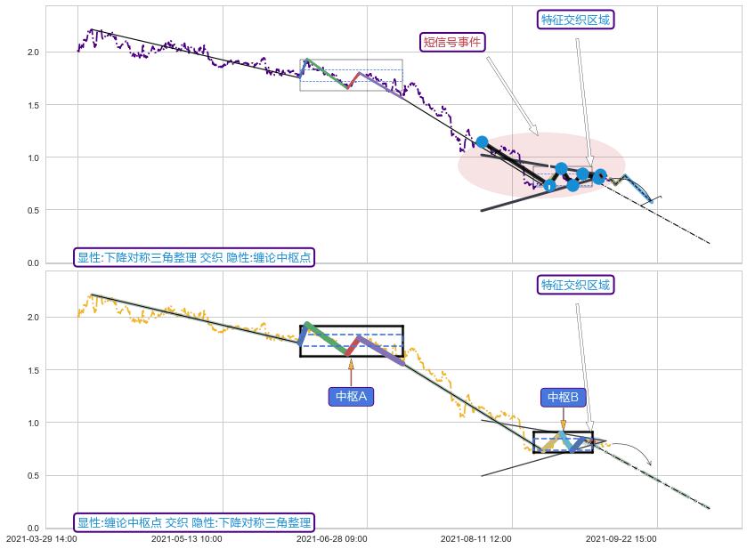 ➢ 下降对称三角整理属【短级别信号事件】缠论中枢点属【长级别信号事件】长短周期组合信号事件, 短长事件长度比23.29%