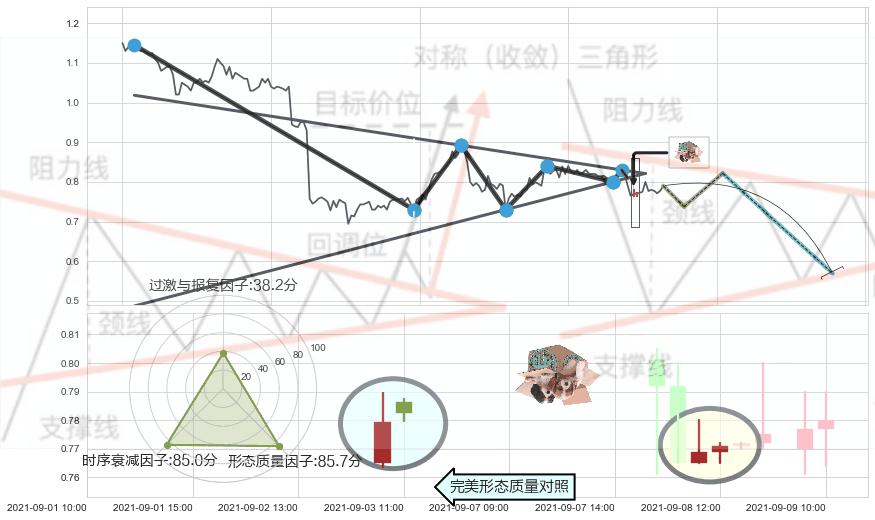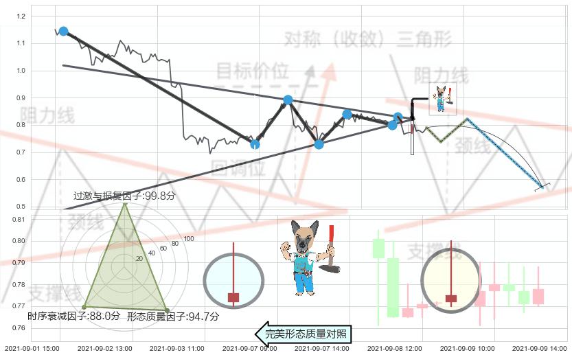 ➢ 【卖1】: 激进型 卖点→(09-08:09: 0.8097 )形成突破下降【对称】三角形整理【整理】形态