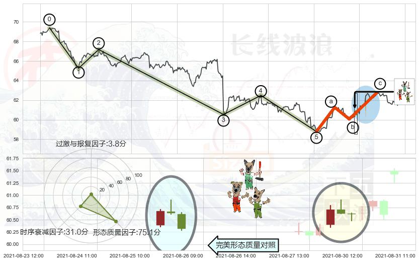 从2021-07-27 09:00至2021-08-13 11:00,共包含81个小时,阶段股价上涨2.04%,阶段股价变动位移路程比: 1 : 11