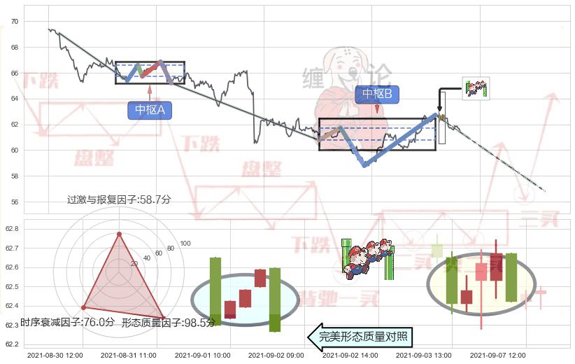 ➢ 下降三部曲(降势三鹤) 🔜 缠论中枢点破位中枢B支撑下拉 综合量化分数:43.55 【偏空】