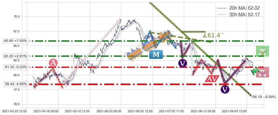 ♞ 20小时均线:62.02,30小时均线:62.17→ 快线<慢线